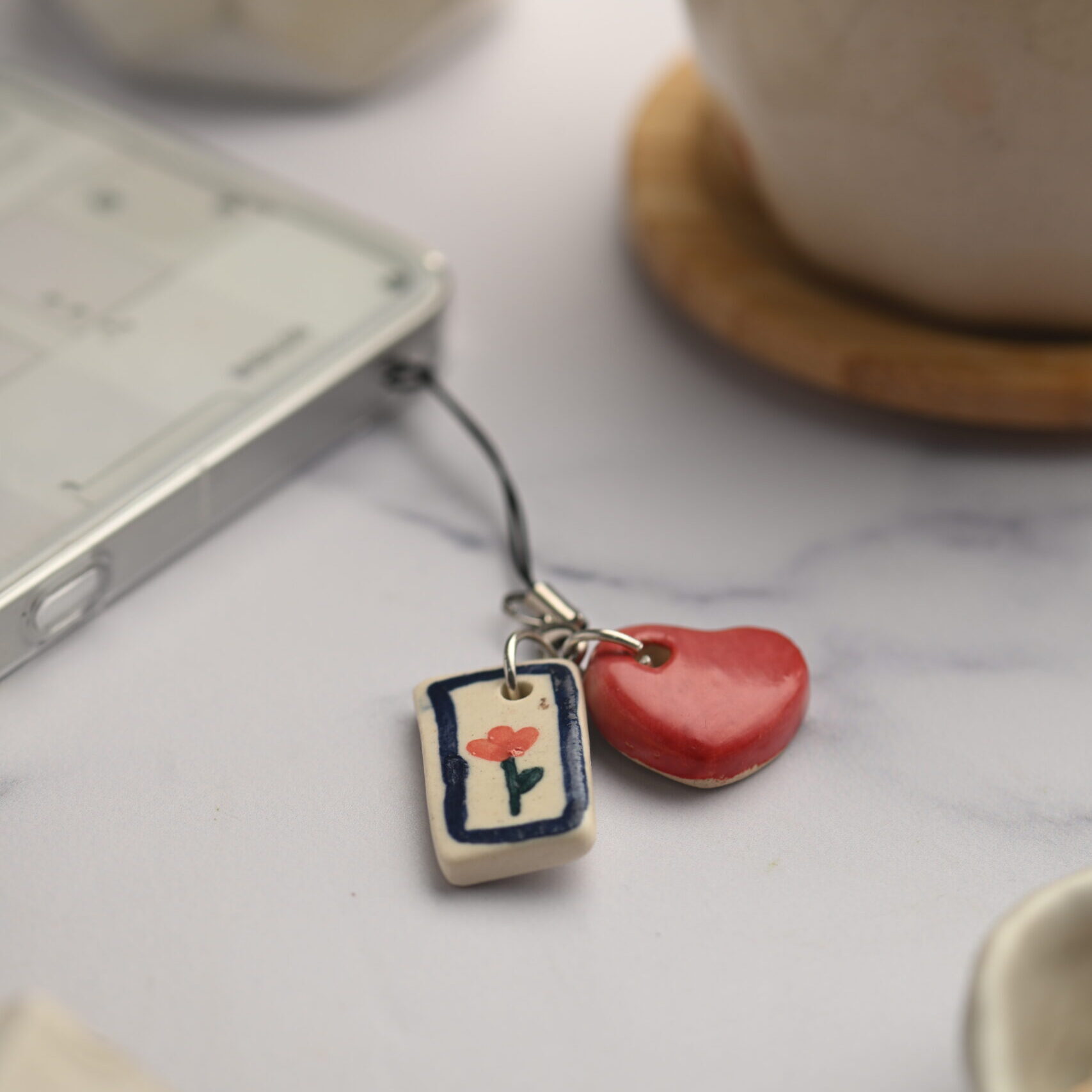 This handmade ceramic phone charm features playful, hand-painted elements designed to hang lightly from your phone. Easy to attach and fun to style, it’s a small detail that makes your everyday tech feel more personal.