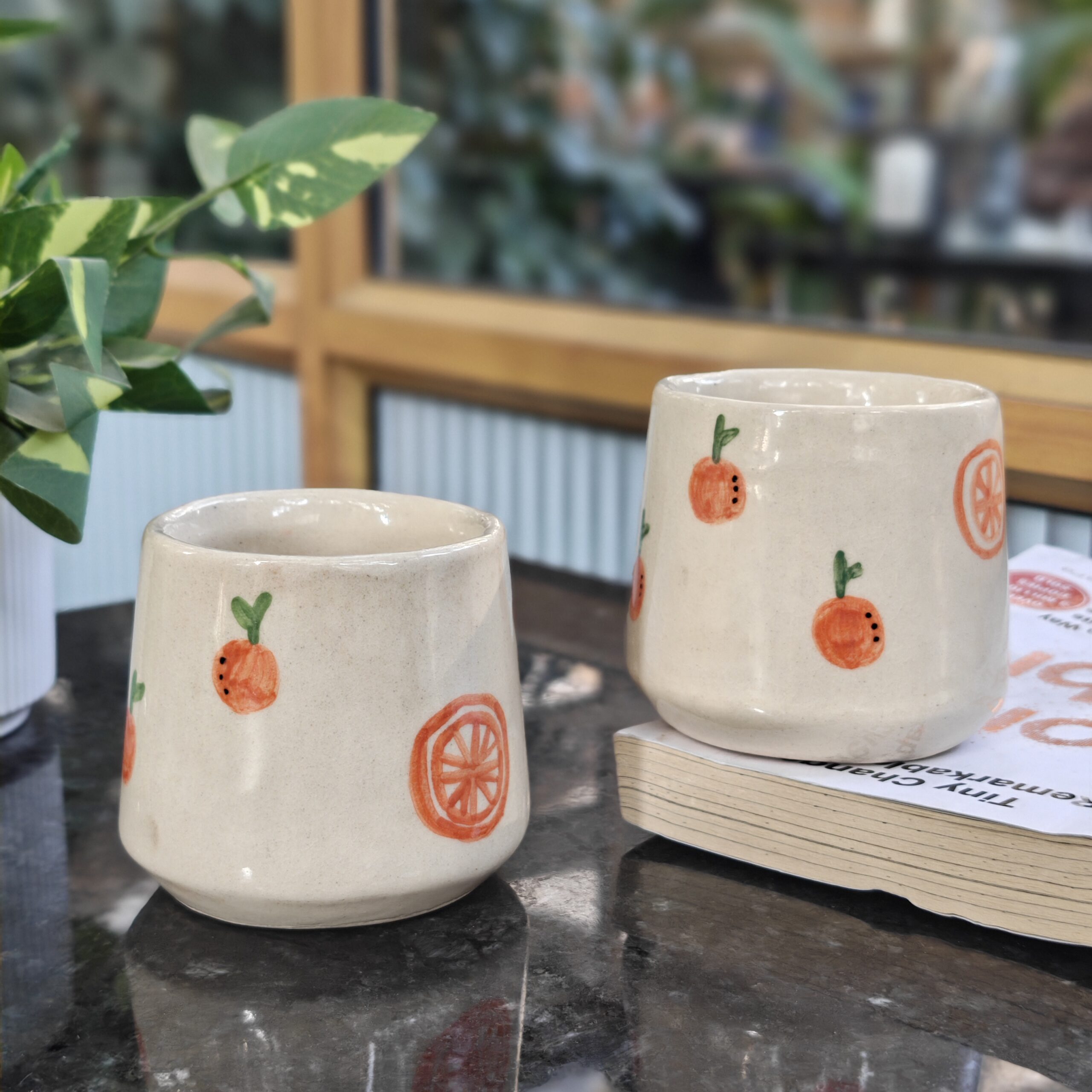 Bright orange slices and fruits wrap around this ceramic tumbler, bringing a fresh and cheerful vibe to your table. Handcrafted with a smooth form and playful design, it’s perfect for juices, cold brews, cocktails, or even your daily water. As the only tumbler in our collection, it’s a fun little standout you’ll love reaching for. A burst of sunshine in every sip.