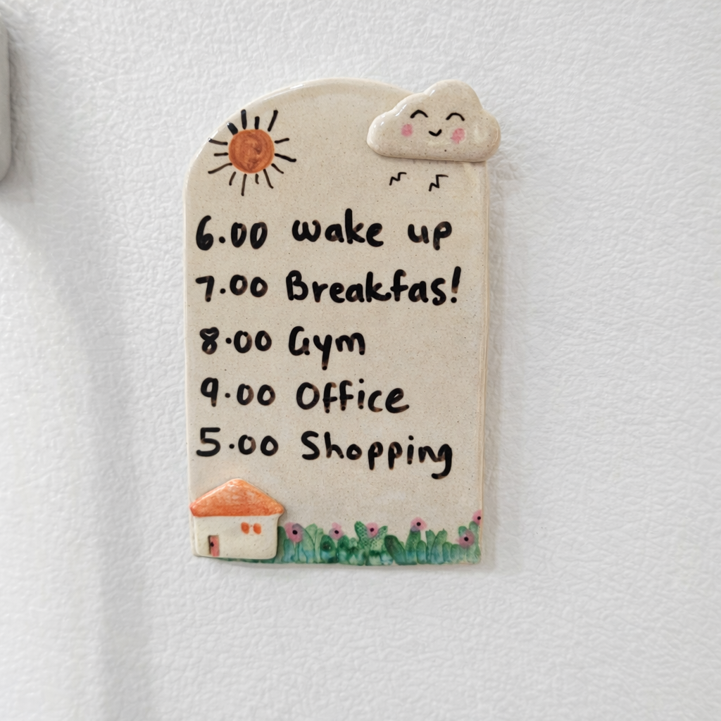 This handmade ceramic note board is your everyday reminder keeper, doodle space, and gentle nudge to stay organised, all wrapped in a little sunshine.
