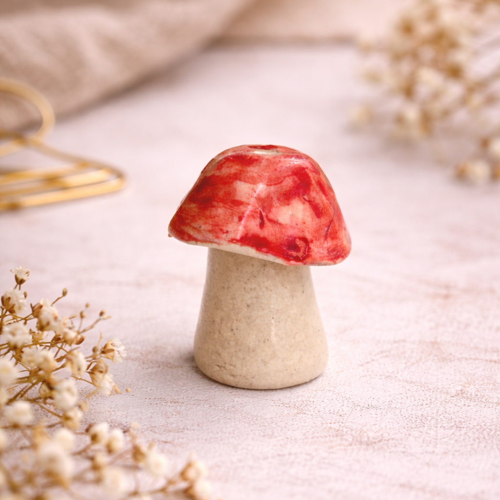 Handmade in ceramic and finished with a glossy red cap, this miniature mushroom buddy is perfect for adding a touch of whimsy to workspaces, shelves, and cozy corners. It doesn’t do much — except sit there quietly and make everything around it feel nicer.