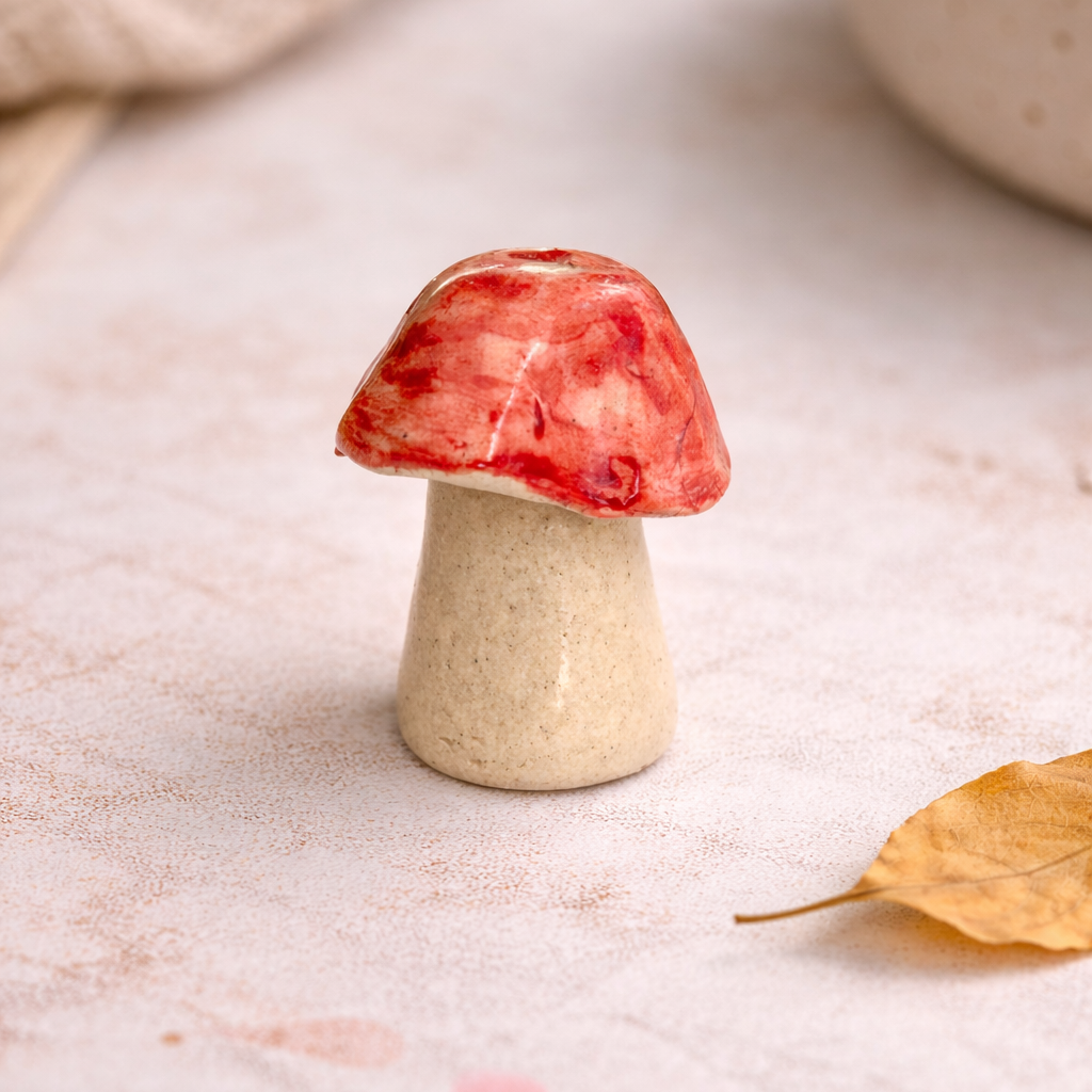 A tiny ceramic mushroom desk buddy — small, cheerful, and full of whimsical charm.