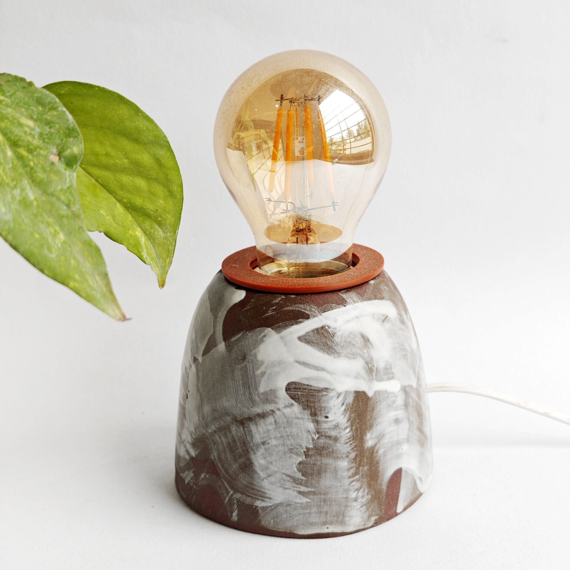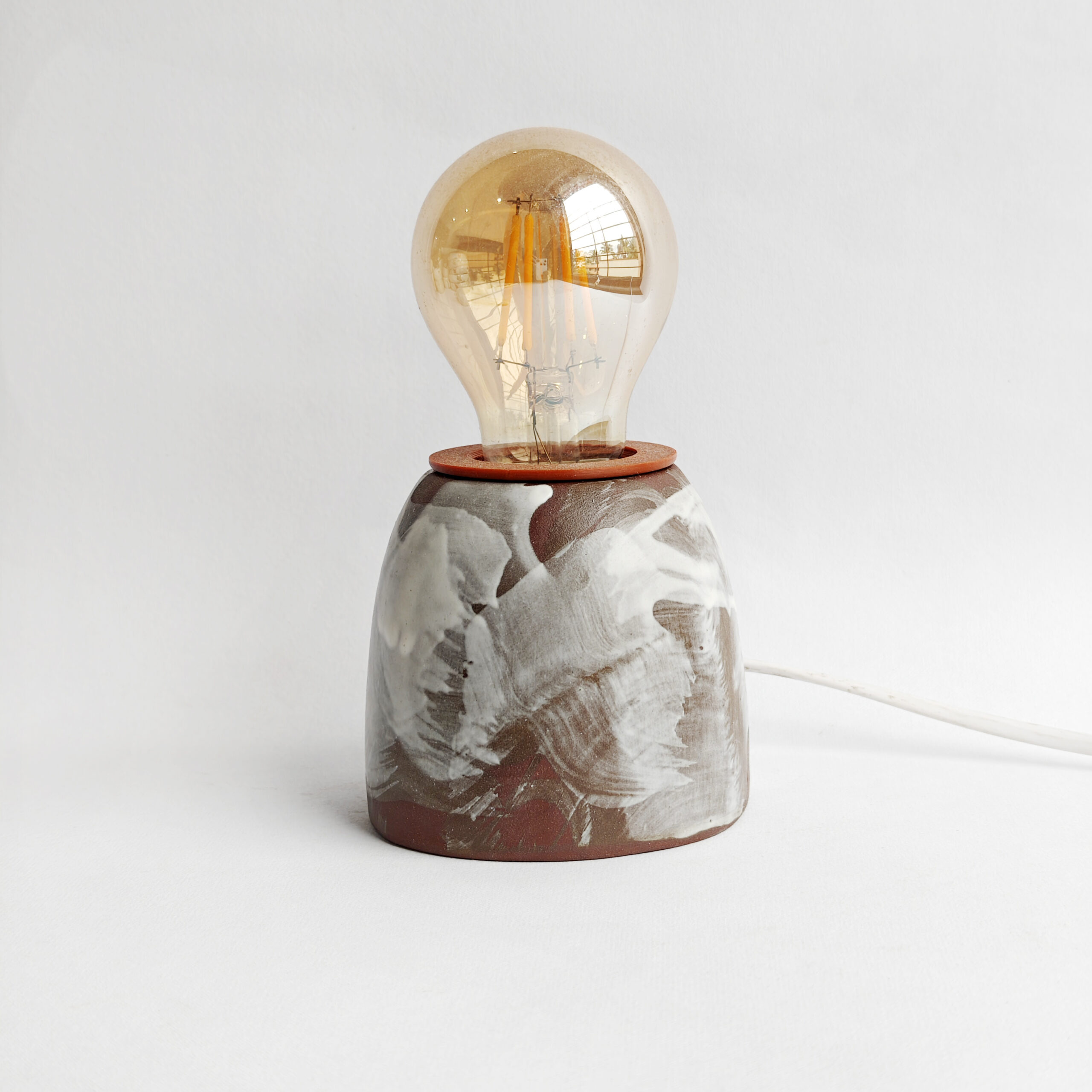 Handcrafted in stoneware clay with a rich dark red-brown base and bold white brush strokes, this marbled ceramic lamp brings warmth and character to any space. Its compact design makes it perfect for your bedside, desk, or a cozy corner. Each piece is one-of-a-kind, so no two patterns are ever the same. Comes with an Edison-style bulb that casts a soft, inviting glow.