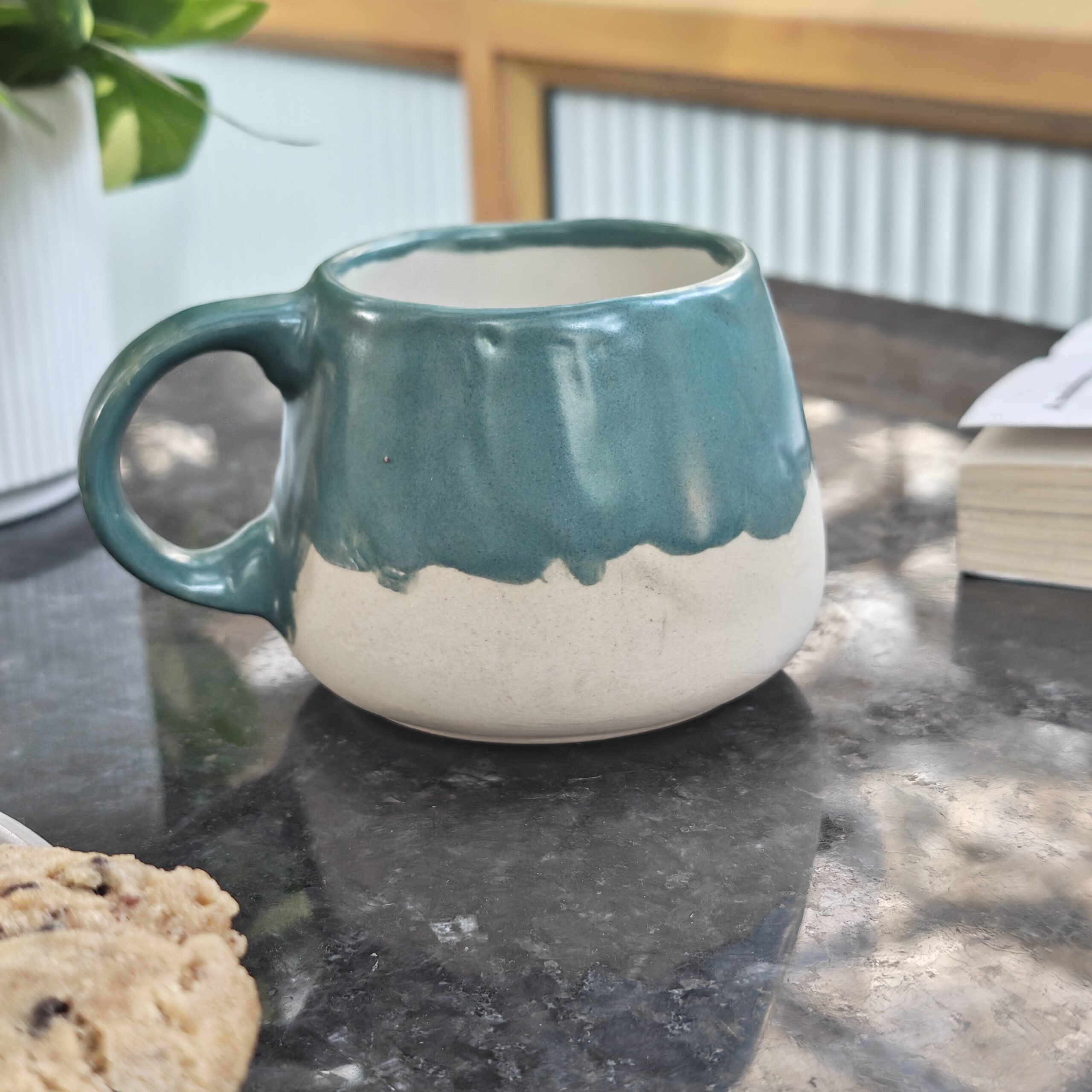 Each mug is handmade in our studio using durable stoneware clay, making every piece slightly unique in shape, glaze movement, and pattern. Comfortable to hold and generous in size, it’s perfect for morning brews, evening teas, or long reading breaks.