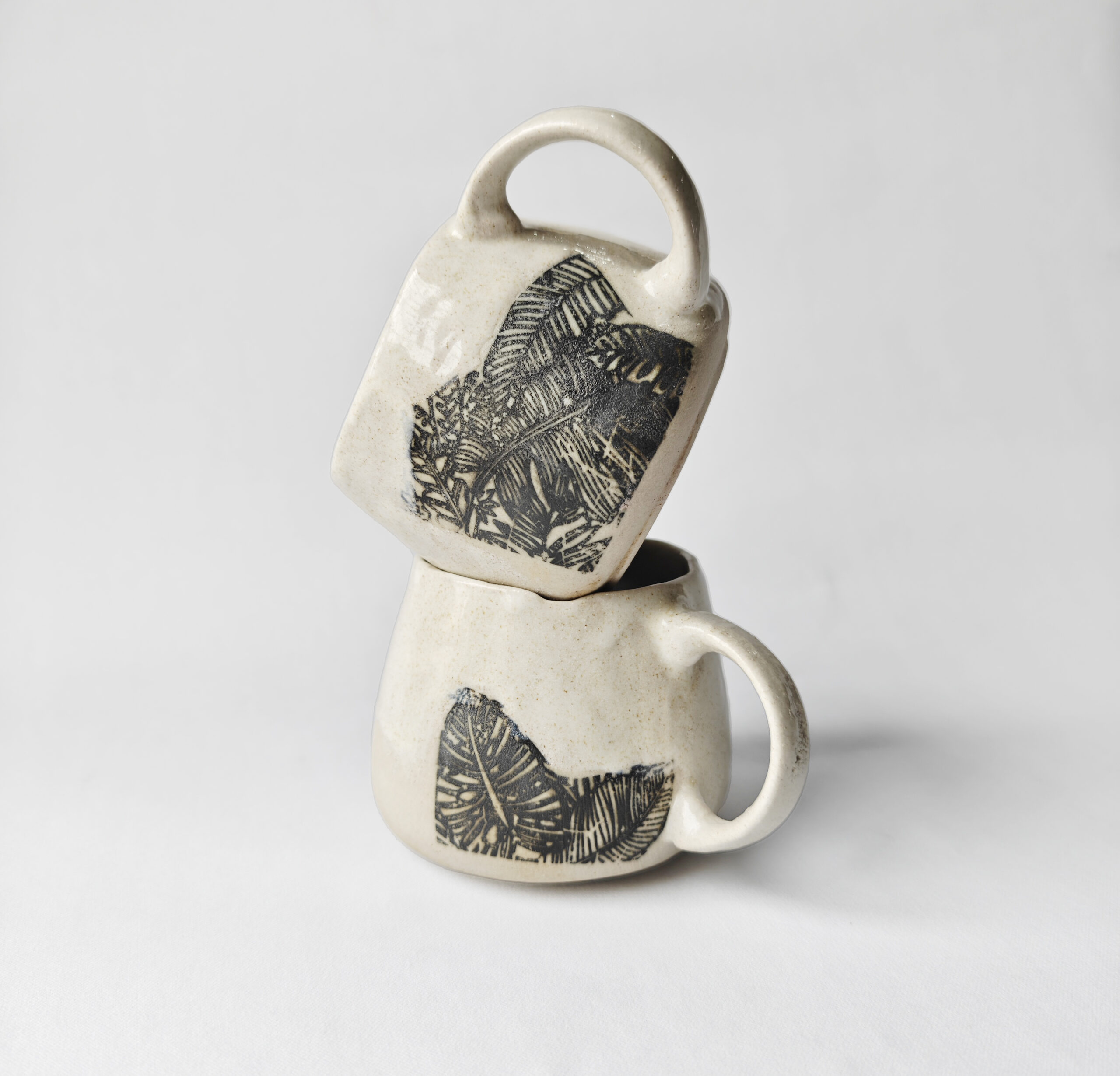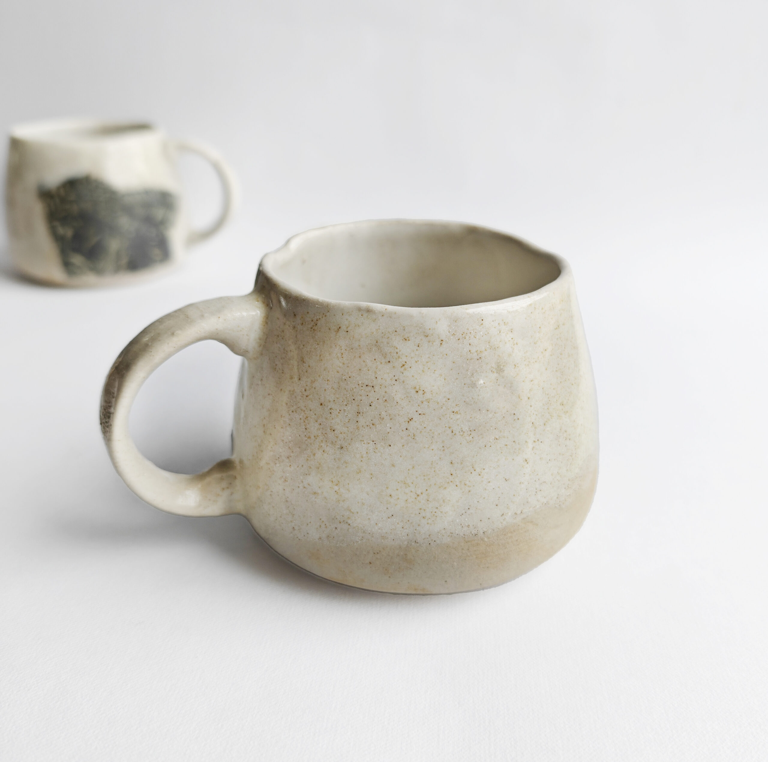 Inspired by the quiet beauty of foliage, this ceramic mug carries strong leaf patterns set against an earthy stoneware base. Handcrafted with a simple form, it feels both rustic and timeless. Its natural finish makes it easy to pair with any table setting. A grounded companion for your hot chocolate. Â